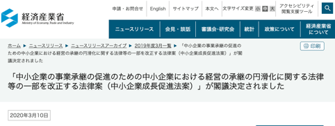 経済産業省より事業承継に関わる法律案についてのニュースリリースが出されました。 ”「中小企業の事業承継の促進のための中小企業における経営の承継の円滑化に関する法律等の一部を改正する法律案(中小企業成長促進法案)」が閣議決定されました。本法案は、現在開会中である通常国会に提出される予定です。”...