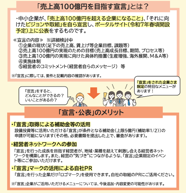 売上高100億円を目指すことを内外の関係者に公表して、経営者がコミットするという今までの補助金制度にはなかった新たな取り組みですね。