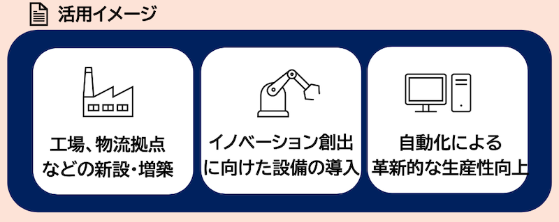 | 補助対象経費 | 建物費(拠点新設・増築等)、機械装置費(器具・備品費含む)、ソフトウェア費、外注費、専門家経費 |