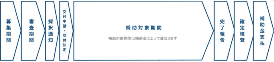 補助金申請の一般的な流れは以下の通りです。また補助金申請の原則について注意点をご確認ください。